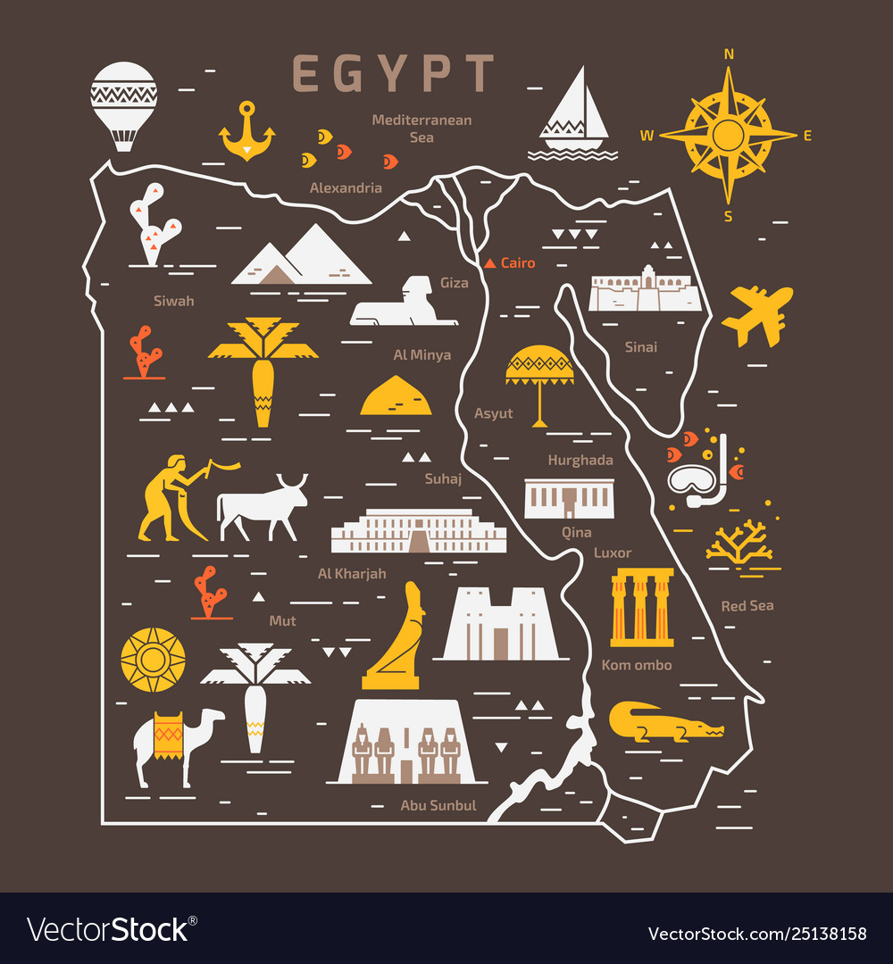 Illustration Tourist Map Egypt Africa Stock Illustration