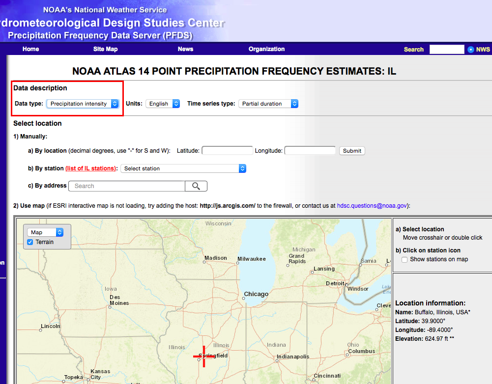 Locating 2 year, 24 hour rainfall intensity values for EBOM SSc6